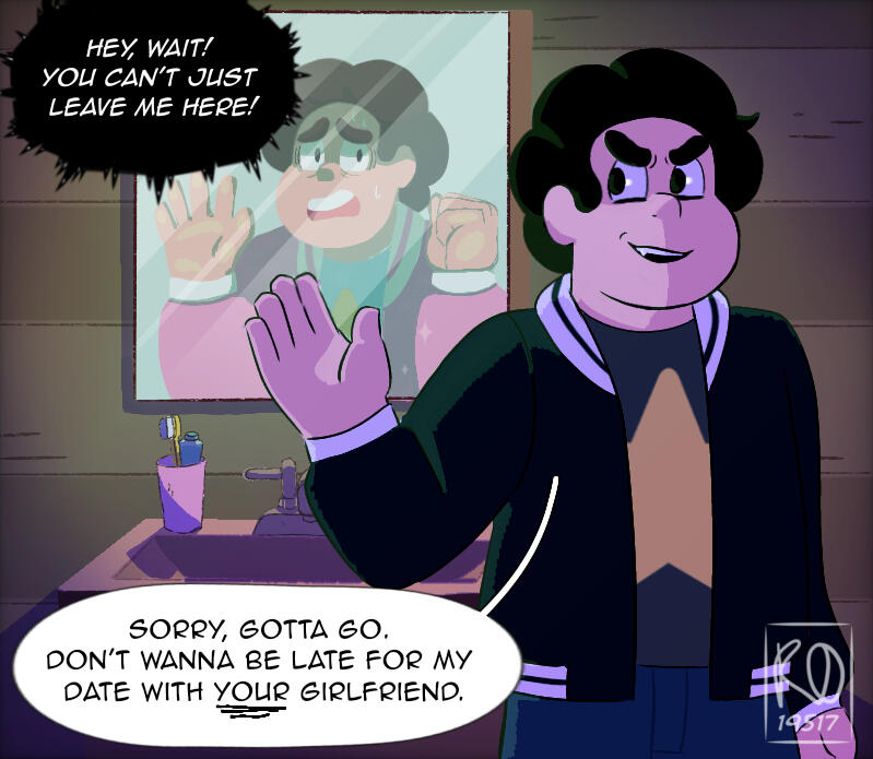 summary: Steven gets tricked into swapping places with his evil reflection.